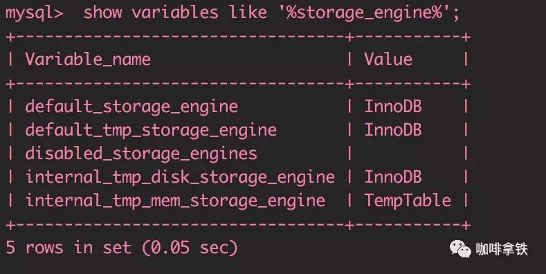 又打出了下面的命令,查看當前數據庫默認的引擎: