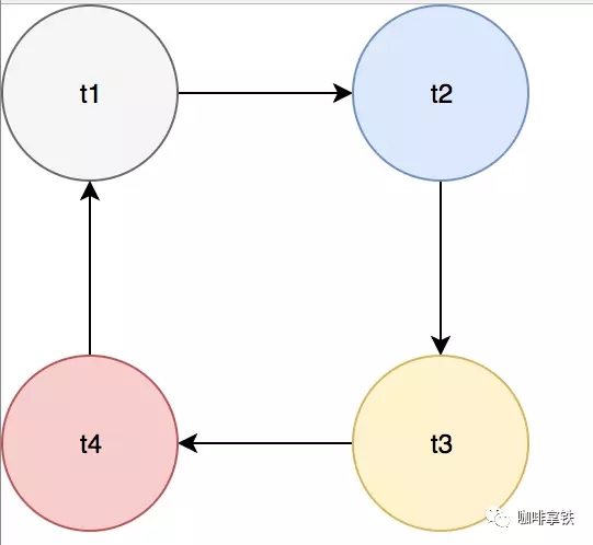 - 等待圖(wait-for-graph): 等待圖用來描述事務之間的等待關系,當這個圖如果出現回路如下: