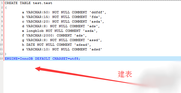 b VARCHAR(15) NOT NULL COMMENT 'fds',