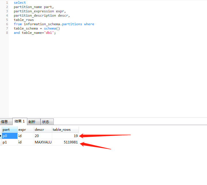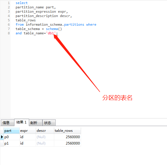 6、通過sql查看一下range 分區(qū)的表信息,其他的兩種分區(qū)是大同小異,就不細說了