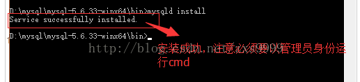 將目錄切換到你解壓文件的D:\mysql\mysql-5.6.33-winx64\bin目錄,