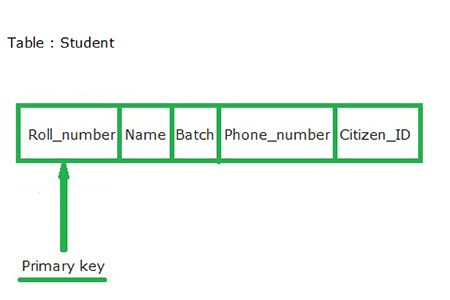 為了更好地理解主鍵,我們創(chuàng)建一個名為Student的表,它具有roll_number、name、batch、phone_number、citizen_id等屬性。
