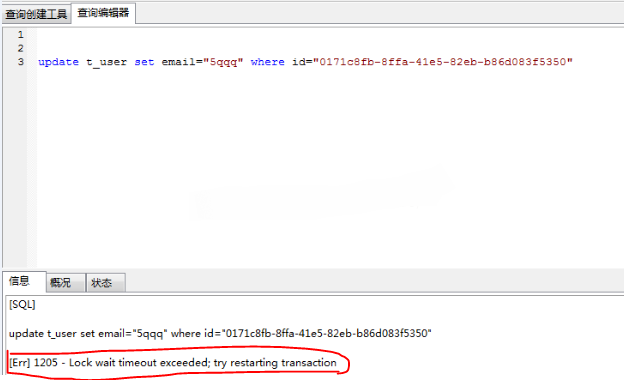 期間如果并未殺掉持有鎖的線程:則第二個(gè)update語句提示等待鎖超時(shí)