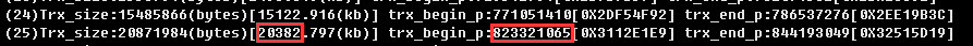 第一個(gè)線程為什么執(zhí)行很慢,分析了發(fā)生告警時(shí)間段的日志文件,發(fā)現(xiàn)日志中存在2個(gè)15M和20M的大事務(wù)