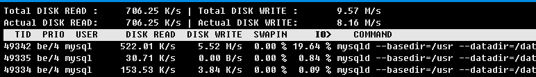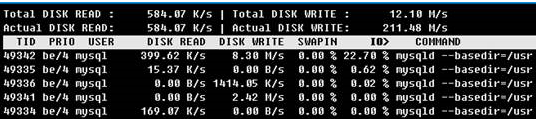 1、通過iotop工具可以看到當前IO消耗最高的mysql線程
