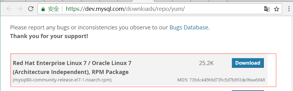 進入mysql官網(wǎng)獲取RPM包下載地址