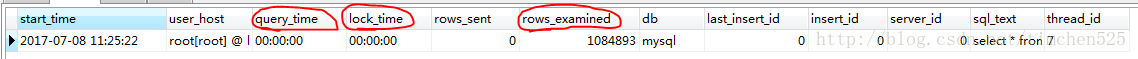 可以看到,不管是表還是文件,都具體記錄了:是那條語(yǔ)句導(dǎo)致慢查詢(sql_text),該慢查詢語(yǔ)句的查詢時(shí)間(query_time),鎖表時(shí)間(Lock_time),以及掃描過(guò)的行數(shù)(rows_examined)等信息。