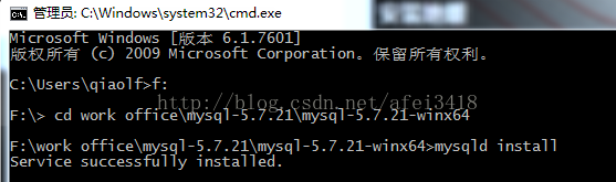 3、安裝mysql服務(wù)已管理員身份打開cmd窗口,將目錄切換到mysql安裝文件夾下的bin目錄下執(zhí)行mysqld install
