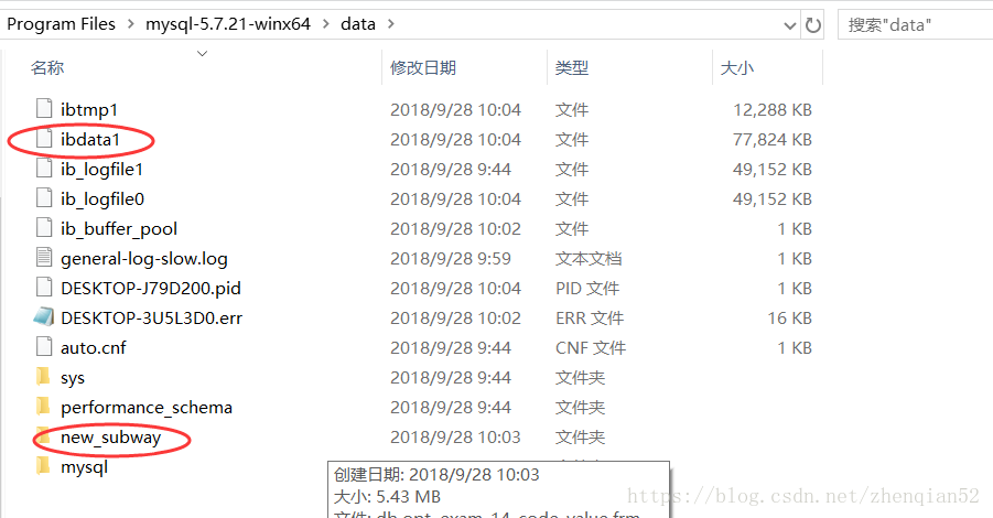 里面有很多的歷史文件,其他都不要管,1 是ibdata1 該文件是必須要拷貝過去的,2 是我要恢復(fù)的數(shù)據(jù)庫名稱