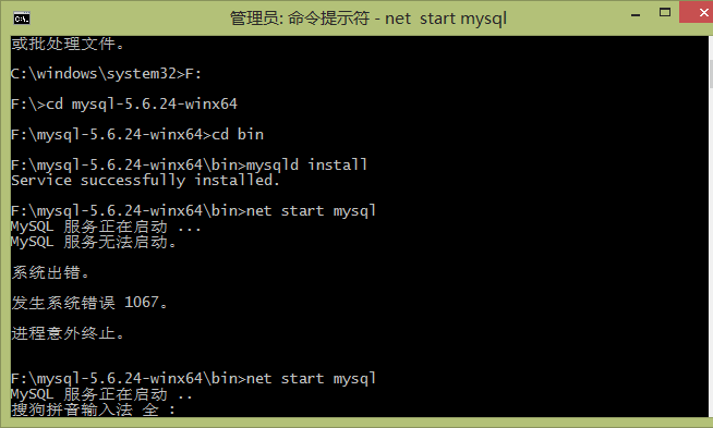 1、之前安裝過免安裝版本的,但是總是失敗。系統(tǒng)錯(cuò)誤1067