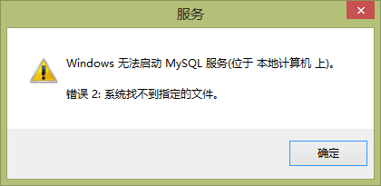 2、啟動不了本地MySQL Service,彈出下圖
