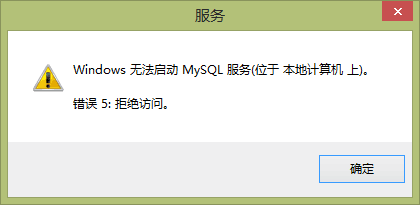 3、當(dāng)我再一次啟動MySQL service,彈出這個(gè)錯(cuò)誤,錯(cuò)誤5:拒絕訪問。