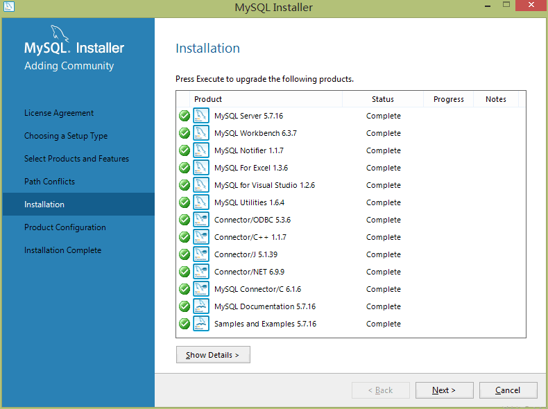 五.真正的安裝成功的過程(mysql-installer-community-5.7.16.0)