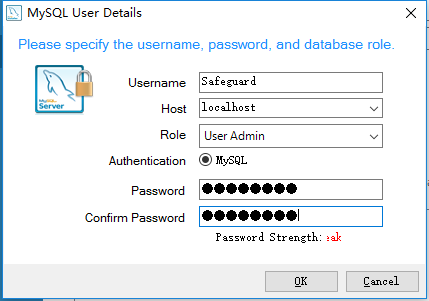 可以增加一個(gè)mysql User Accounts
