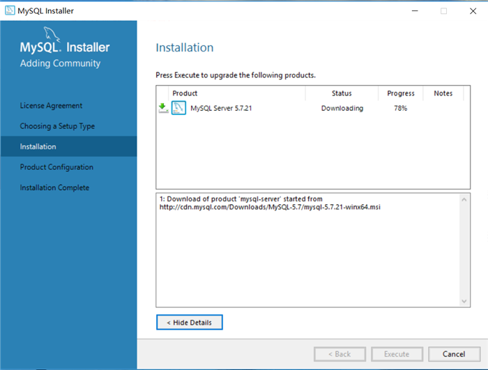 3.執(zhí)行MySQL的下載和安裝,單擊 Execute 。