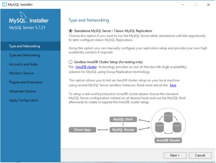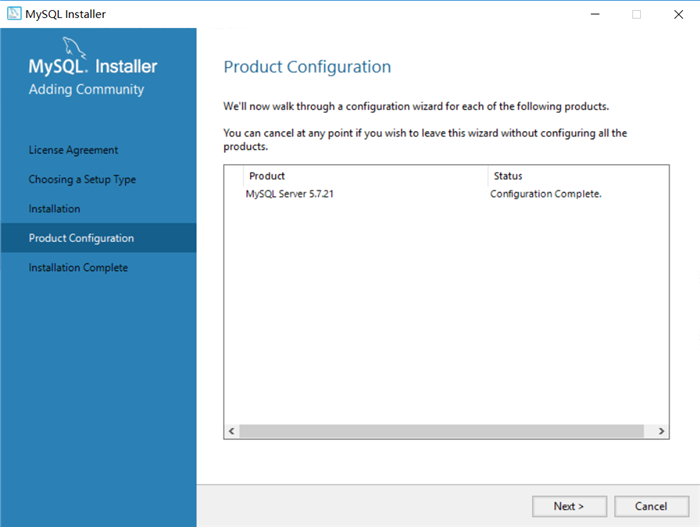 5.單擊next進(jìn)入MySQL配置向?qū)А?/p>