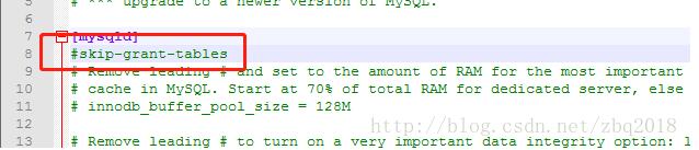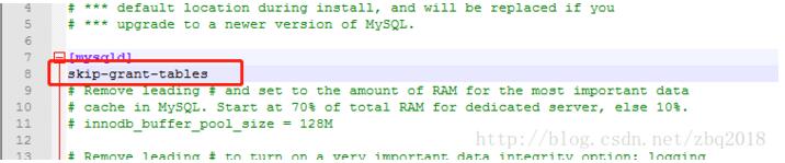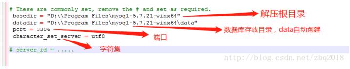 # For advice on how to change settings please see # http://dev.mysql.com/doc/refman/5.6/en/server-configuration-defaults.html # *** DO NOT EDIT THIS FILE. It's a template which will be copied to the # *** default location during install, and will be replaced if you # *** upgrade to a newer version of MySQL. [mysqld] # Remove leading # and set to the amount of RAM for the most important data # cache in MySQL. Start at 70% of total RAM for dedicated server, else 10%. # innodb_buffer_pool_size = 128M # Remove leading # to turn on a very important data integrity option: logging # changes to the binary log between backups. # log_bin # These are commonly set, remove the # and set as required. basedir = "D:\\Program Files\mysql-5.7.21-winx64" datadir = "D:\\Program Files\mysql-5.7.21-winx64\data" port = 3306 character_set_server = utf8 # server_id = ..... # Remove leading # to set options mainly useful for reporting servers. # The server defaults are faster for transactions and fast SELECTs. # Adjust sizes as needed, experiment to find the optimal values. # join_buffer_size = 128M # sort_buffer_size = 2M # read_rnd_buffer_size = 2M sql_mode=NO_ENGINE_SUBSTITUTION,STRICT_TRANS_TABLES