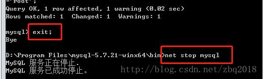 5.寫兩個(gè)bat文件用于啟動(dòng)和關(guān)閉mysql服務(wù)