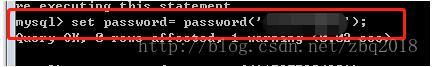 (5)執(zhí)行改密碼語句 (正常登陸的使用set password= password(‘新密碼'); )