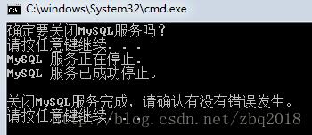@echo off echo 確定要關(guān)閉MySQL服務(wù)嗎? pause net stop mysql echo 關(guān)閉MySQL服務(wù)完成,請確認(rèn)有沒有錯(cuò)誤發(fā)生。 Pause