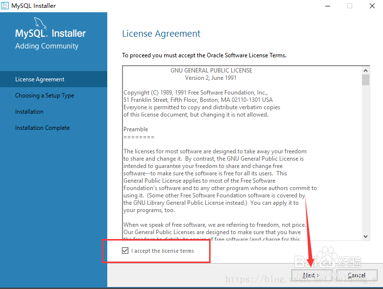 3.選擇接受許可條款“I accept the license terms”,然后點擊 "Next ".