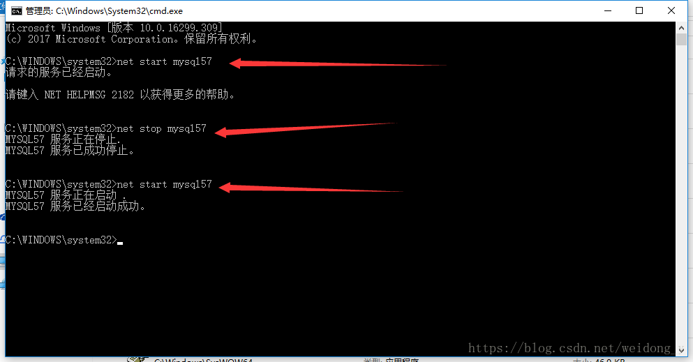 6.然后,以管理的身份打開 cmd ,記住,一定是要以“管理員身份”打開,重要的事情別忘了,打開我的電腦,在搜索欄輸入 “cmd.exe” ,其他按下圖操作 。然后輸入命令:net start mysql57 , (mysql57 是我的數(shù)據(jù)庫名字,剛剛有改動的,請換成自己的數(shù)據(jù)庫名字),關(guān)閉 mysql 的命令是:net stop mysql57