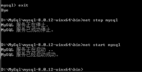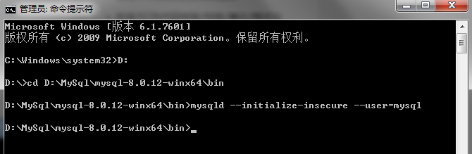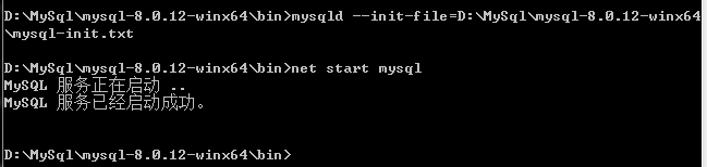 2、關(guān)閉mysql服務(wù),然后在cmd中進(jìn)入bin目錄,輸入mysqld --init-file=D:\MySql\mysql-8.0.12-winx64\mysql-init.txt,執(zhí)行完成后,刪除mysql-init.txt文件,重啟mysql服務(wù)