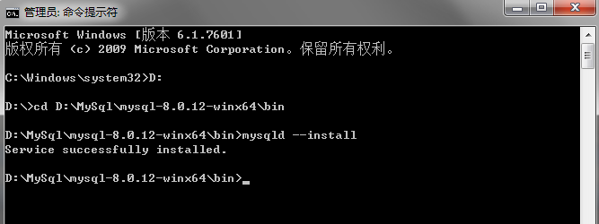 4、繼續(xù),輸入mysqld --install