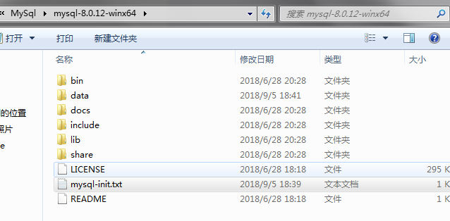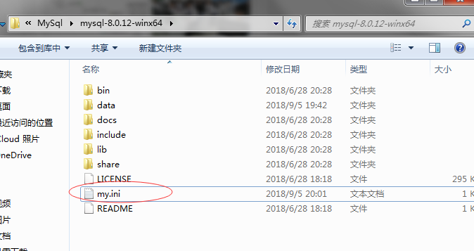 2、在D:\MySql\mysql-8.0.12-winx64的根目錄下,新建my.ini文件,(5.7后沒了這文件,自己新建),如下圖: