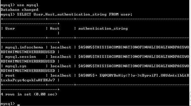輸入SELECT User,Host,authentication_string FROM user;