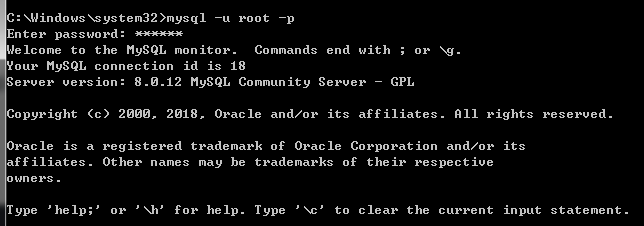 mysql -uroot -p