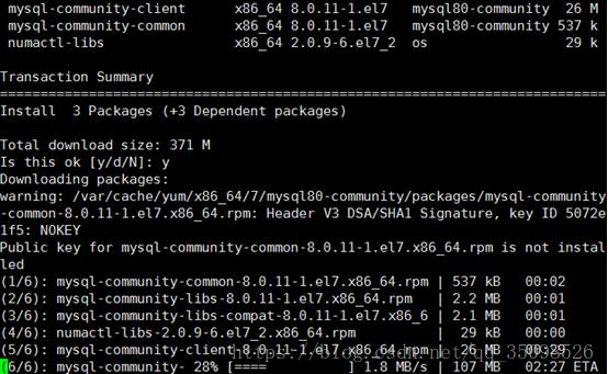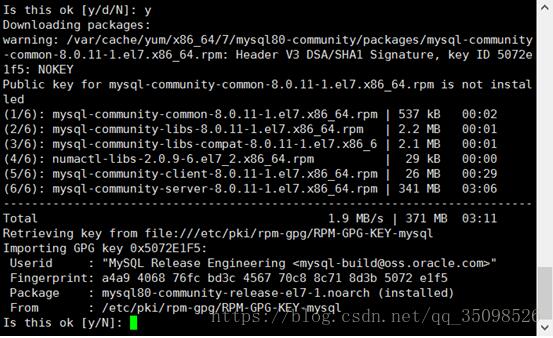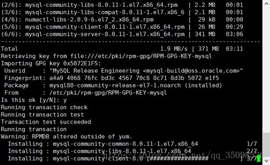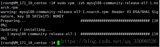 輸入指令:sudo rpm -ivh mysql80-community-release-el7-1.noarch.rpm