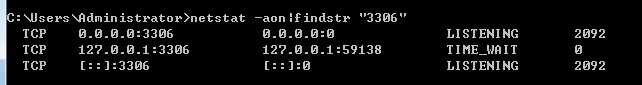 netstat -aon|findstr "3306"