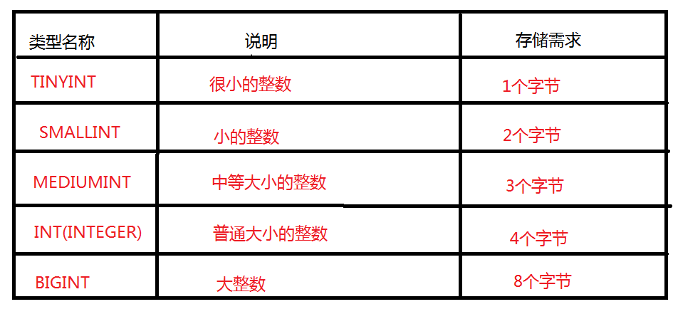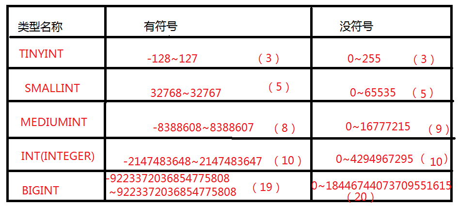 整數(shù)類(lèi)型:TINYINT、SMALLINT、MEDIUMINT、INT、BIGINT