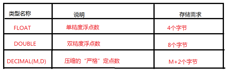 浮點(diǎn)數(shù)類(lèi)型:FLOAT、DOUBLE