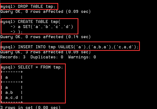 1、插入SET字段中的值如果有重復(fù),則會(huì)自動(dòng)刪除重復(fù)的值