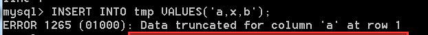3、如果插入了不屬于SET中的值,就會(huì)報(bào)錯(cuò)