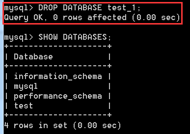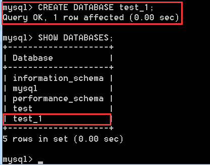 4、創(chuàng)建名為test_1的數(shù)據(jù)庫