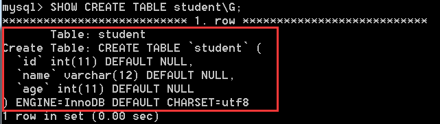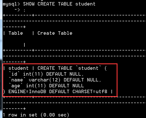 CREATE TABLE student( id INT(11), name VARCHAR(12), age INT(11) );