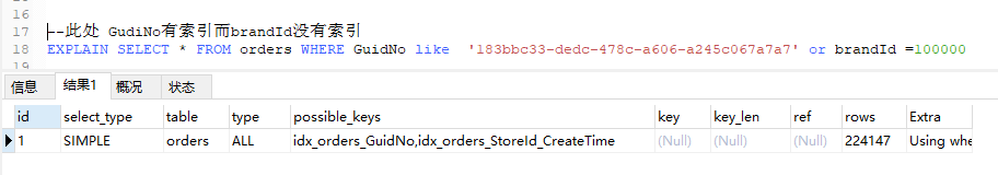 2.3 where語(yǔ)句中使用 or,但是沒(méi)有把or中所有字段加上索引。