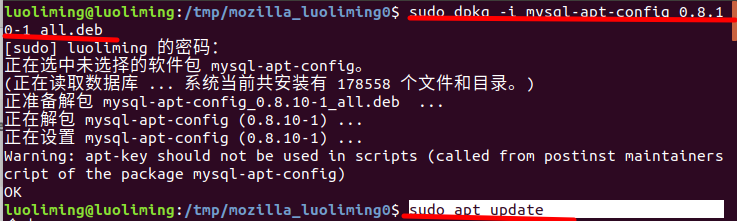sudo dpkg -i mysql-apt-config_0.8.10-1_all.deb sudo apt update