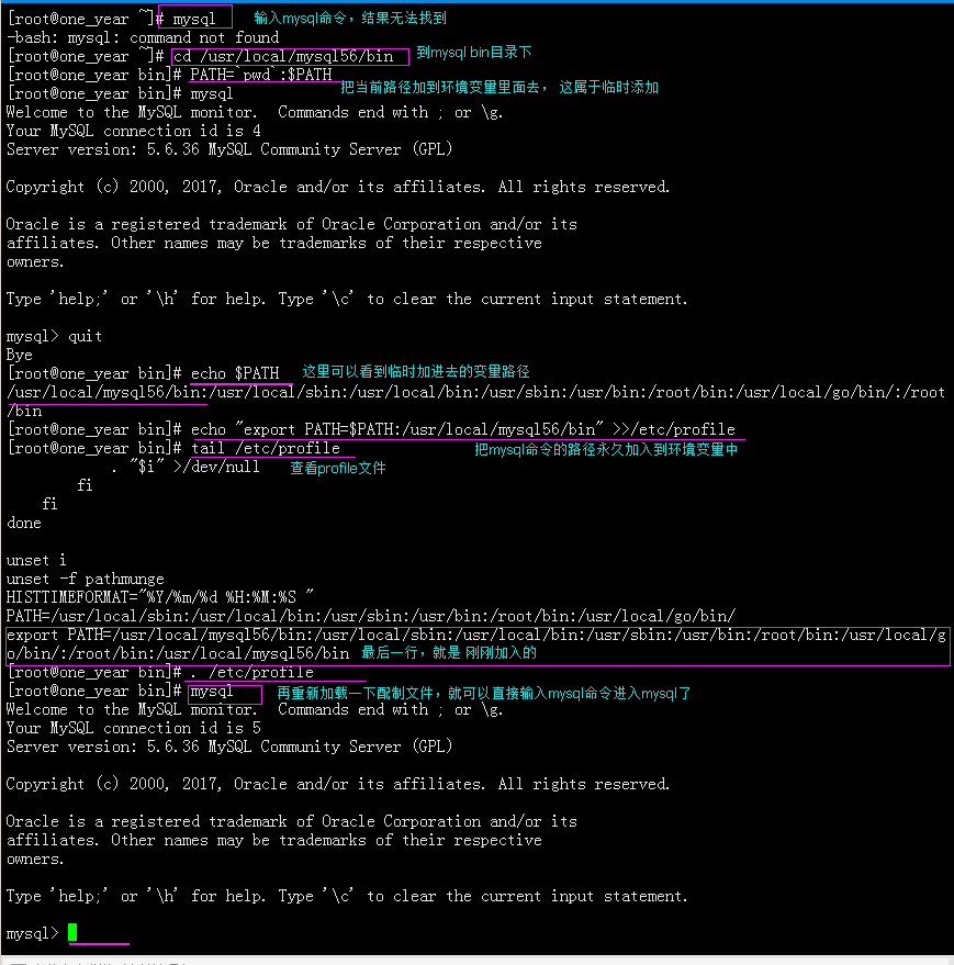 永久添加:echo "export PATH=$PATH:/usr/local/mysql56/bin" >>/etc/profile