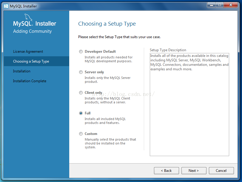 3、選擇一種安裝類型,我選擇了“Full”,單擊“Next”,進入下一步