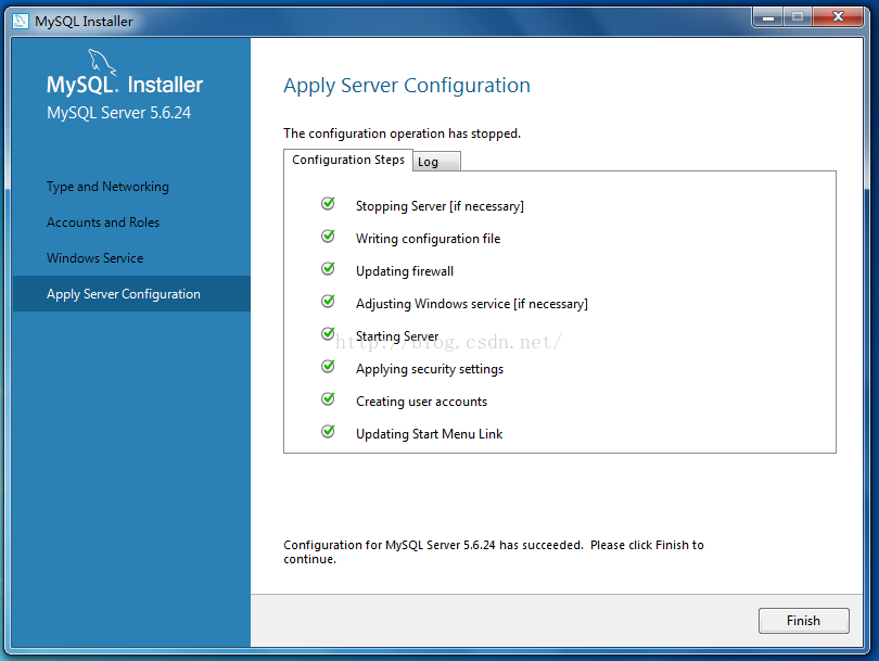 17、服務(wù)配置完畢后,單擊”Finish“,進入下一步