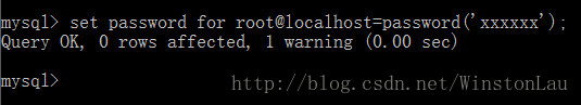 set password for root@localhost=password('xxxxxx');