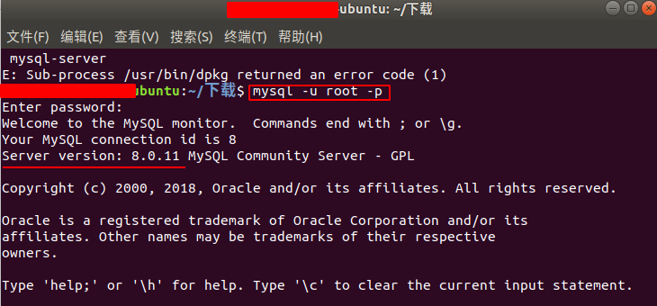 使用sudo apt install mysql-server命令,就會安裝MySQL8.0
