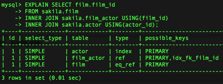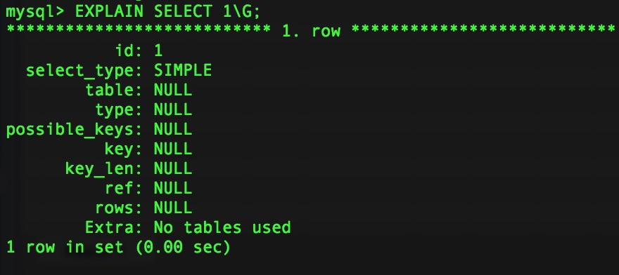 將在下一部分展示explain結(jié)果中每一列的意義。