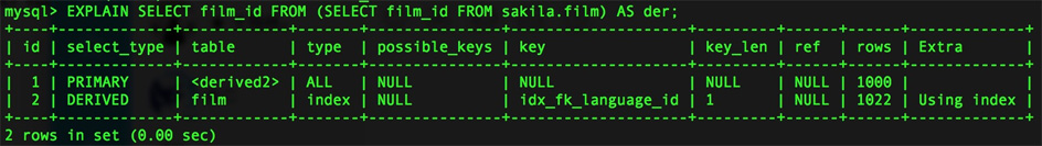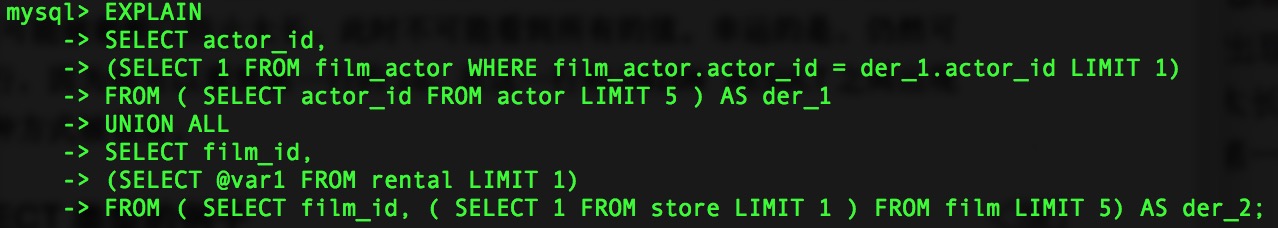 如你所知,這個(gè)查詢執(zhí)行時(shí)有一個(gè)匿名的臨時(shí)表,mysql內(nèi)部通過(guò)別名(der)在外層查詢中引用這個(gè)臨時(shí)表,在更復(fù)雜的查詢中可以看到ref列。