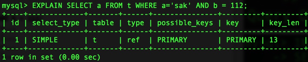 key_len列顯示了在索引字段中可能的最大長(zhǎng)度,而不是表中數(shù)據(jù)使用的實(shí)際字節(jié)數(shù),在前面例子中mysql總是顯示13字節(jié),即使a列恰巧只包含一個(gè)字符長(zhǎng)度。換言之,key_len通過(guò)查找表的定義而被計(jì)算出,而不是表中的數(shù)據(jù)。