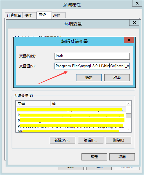 配置環(huán)境變量,將MySQL目錄下的bin目錄添加到系統(tǒng)變量Path中,如下圖: